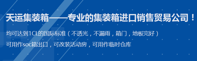 符合國際:箱標準,可用作倉庫和海運及鐵路運輸?shù)鹊?!誠信經(jīng)營、數(shù)量充足、價格優(yōu)惠。公司在中國各大港口(如青島、天津、上海、深圳等均有大批量庫存),在中國香港、韓國、新加坡、東南亞、非洲、歐洲等形成不斷完善的貿易網(wǎng)絡。